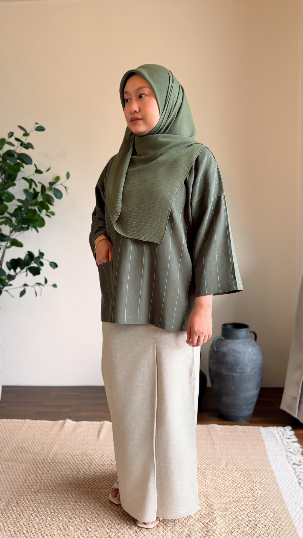 The MAIMUNAH Kurung Kedah Set in Olive blends a classic Kedah silhouette with thoughtful details, creating a look that feels effortless, flattering, and easy to wear.