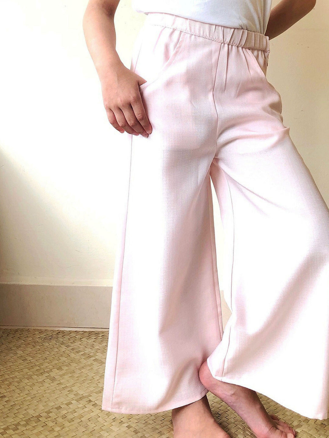 AUBREY Cotton Palazzo Pants in Oatmeal