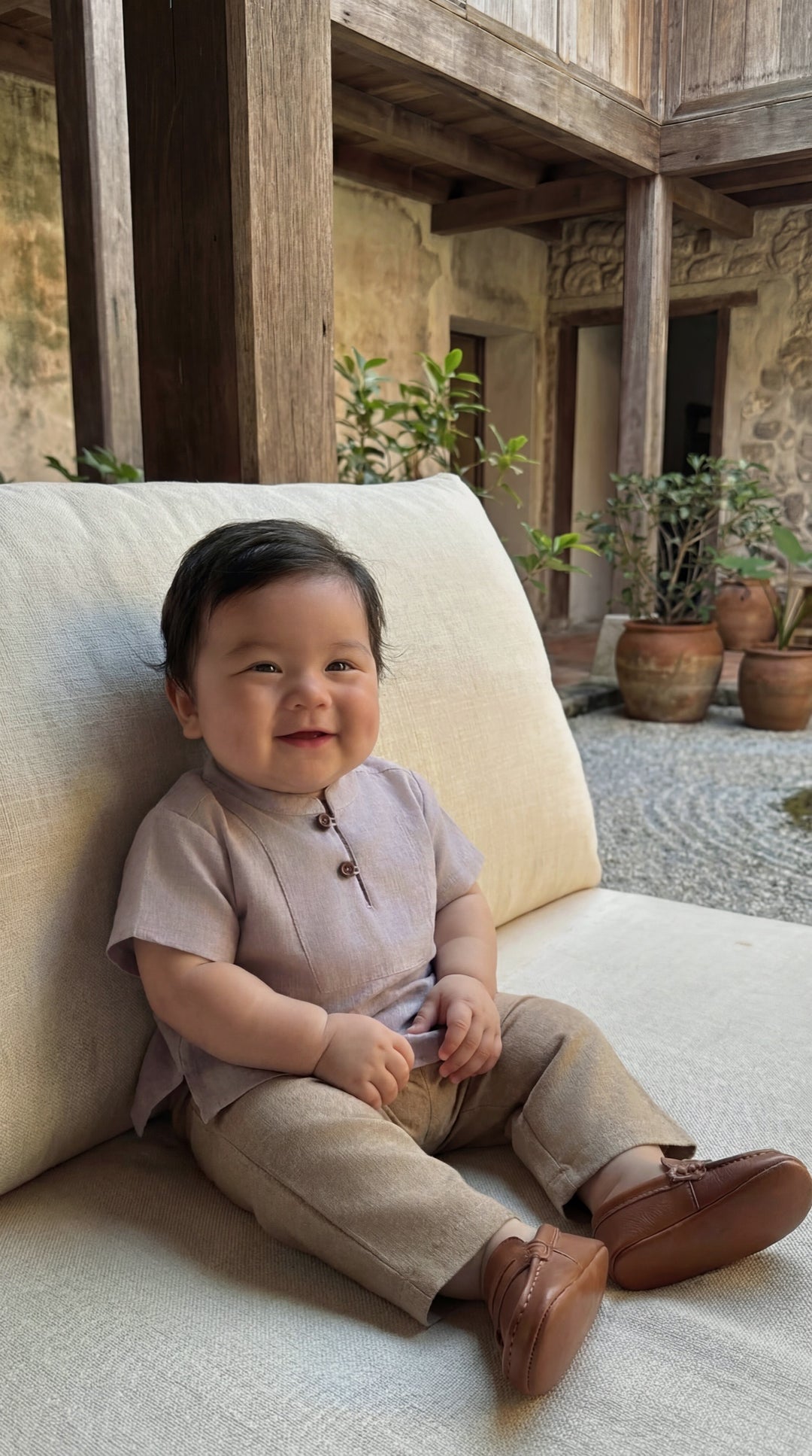 QAID Baby’s Teluk Belanga Baju Melayu Set in Clay Brown