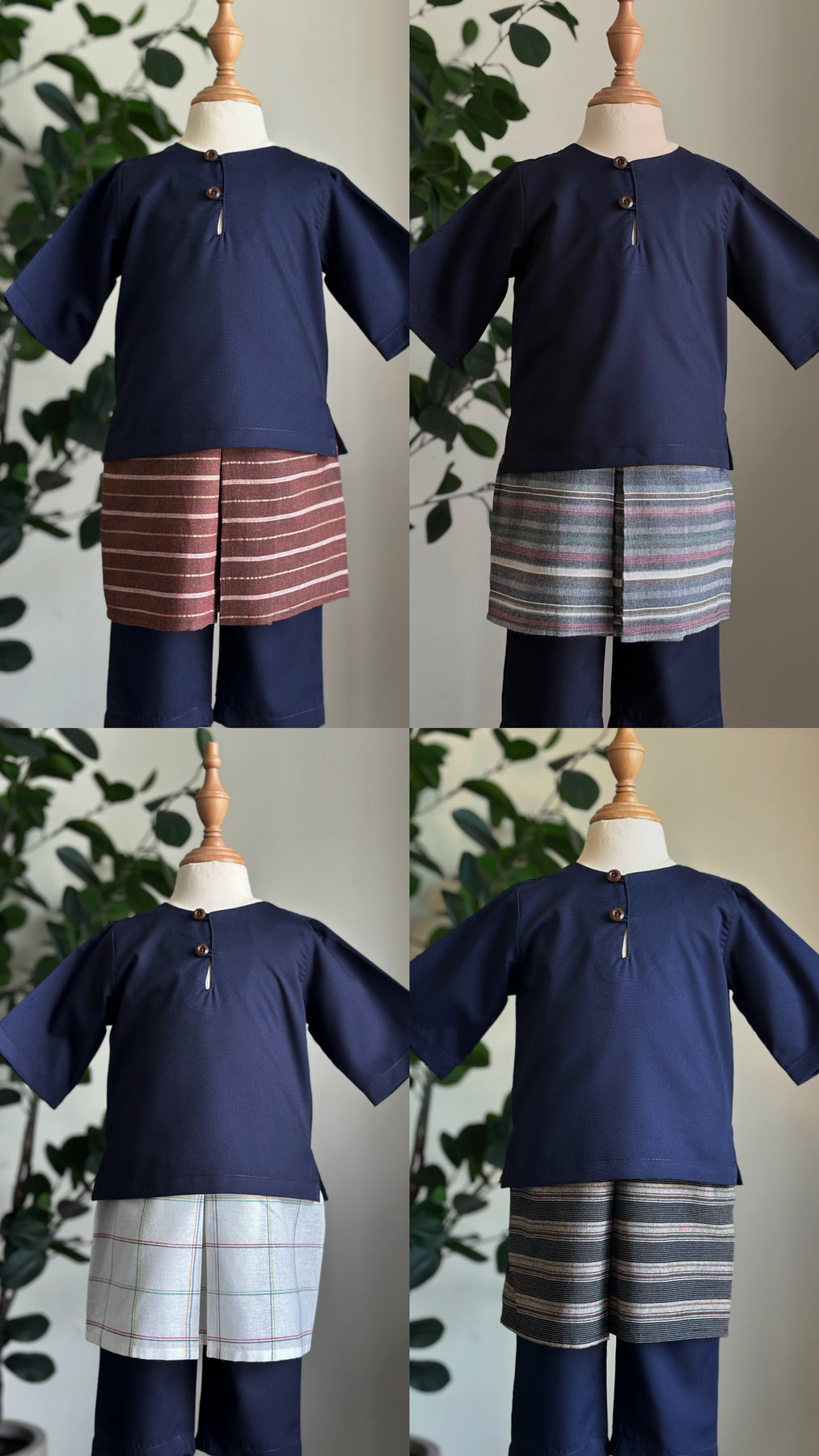 The QAID Baby’s Baju Melayu Teluk Belanga in Midnight Blue features a soft, relaxed silhouette that allows easy movement while maintaining a smart, classic appearance.