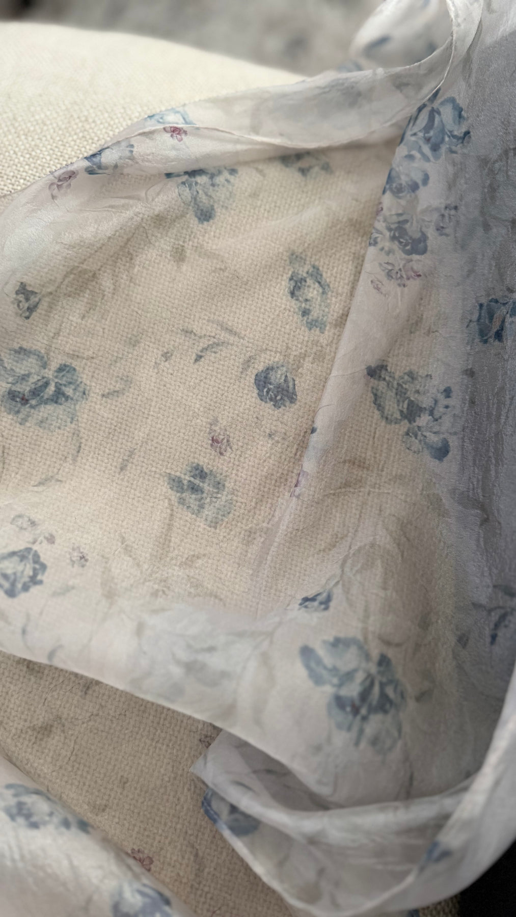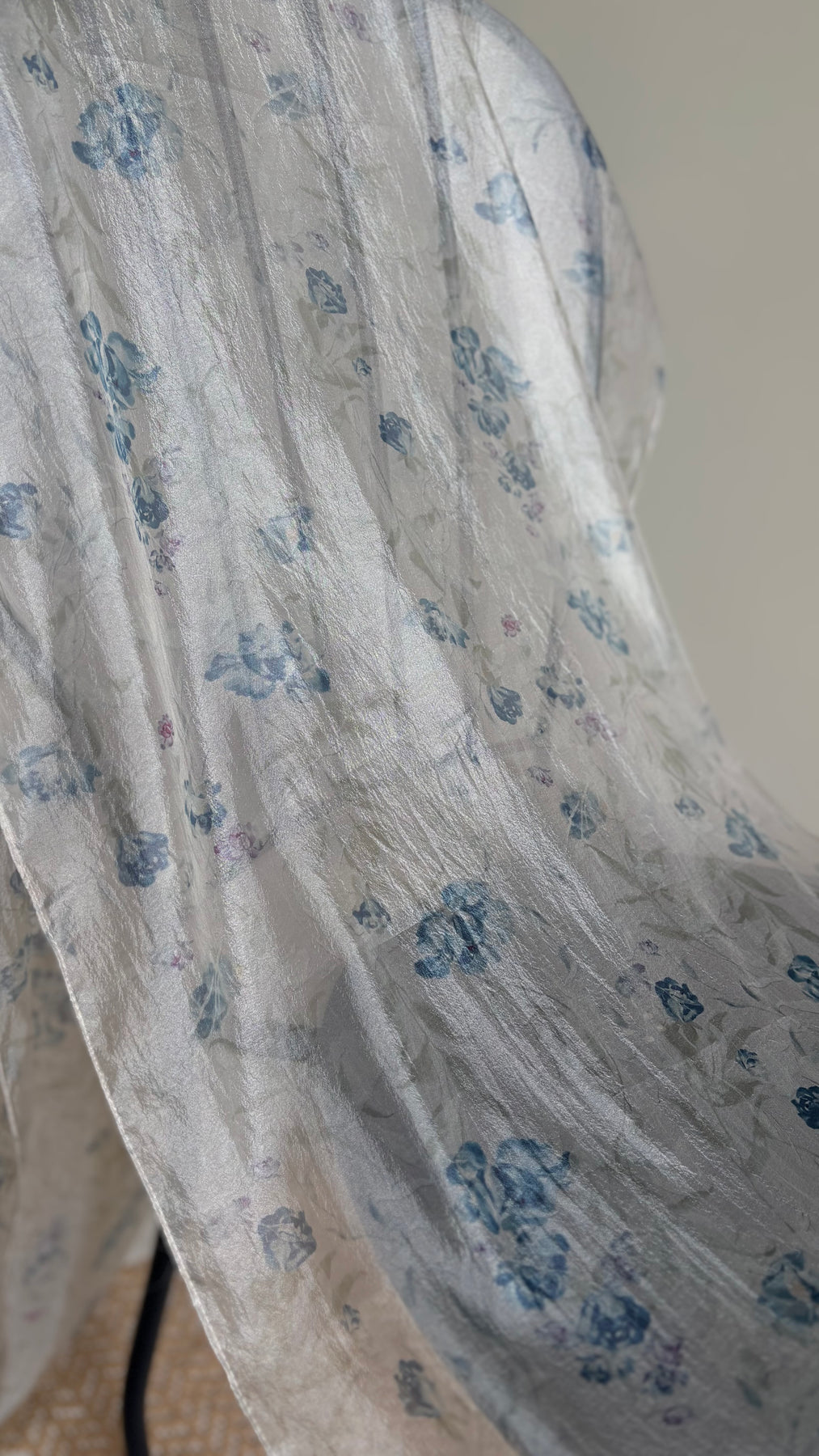 Finish: Soft printed botanical florals with a lightly crinkled texture that adds gentle depth and movement.