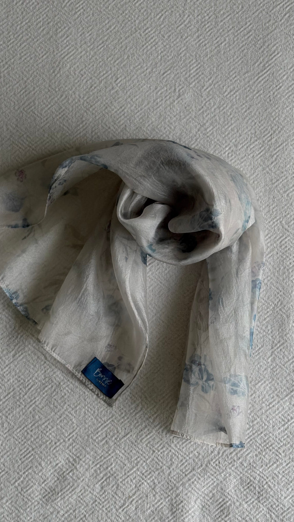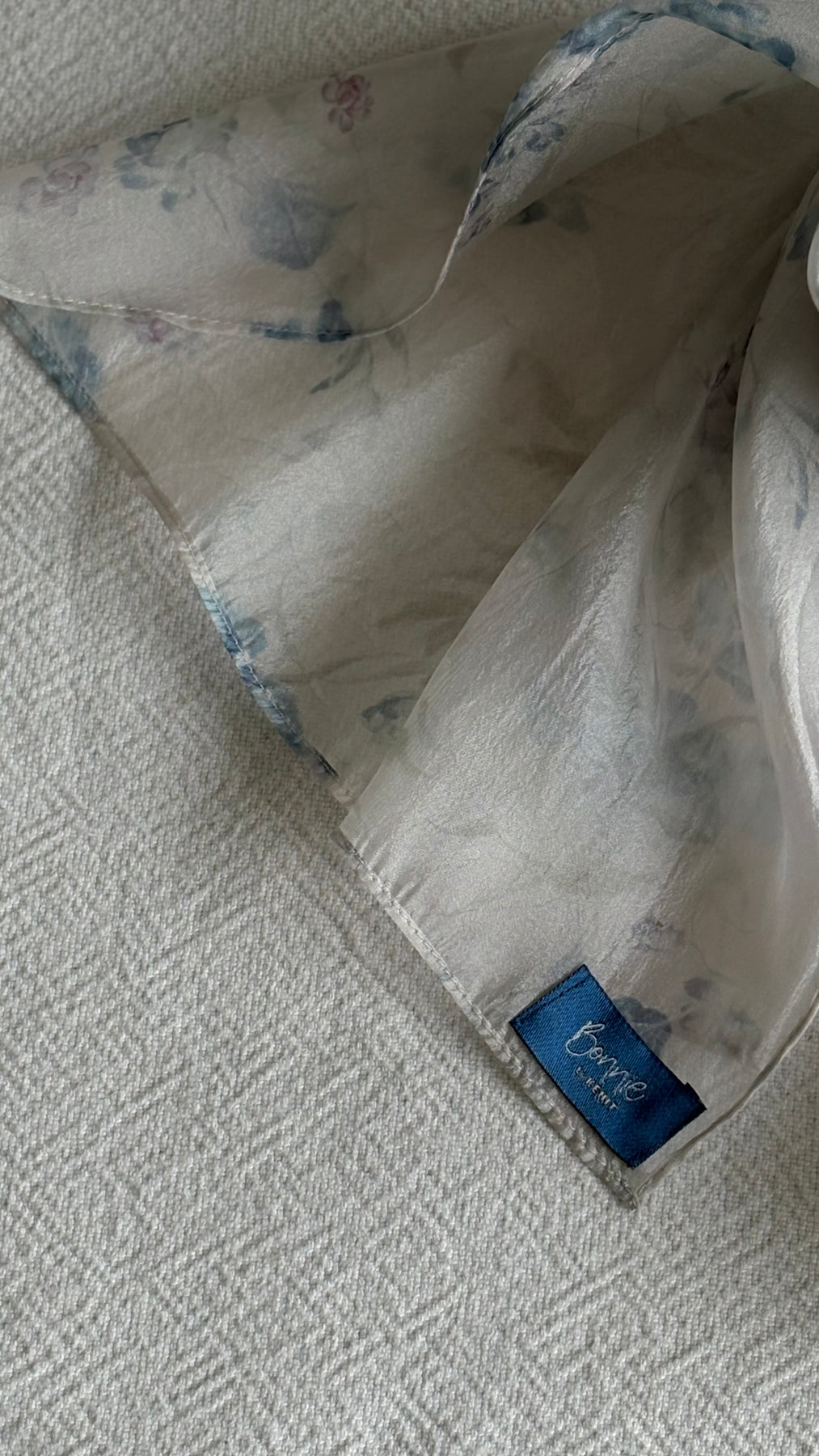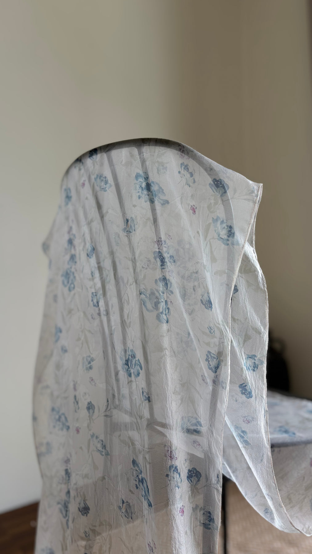 Light and fluid, it drapes gently over the shoulders while revealing delicate floral motifs that feel calm, feminine, and timeless.