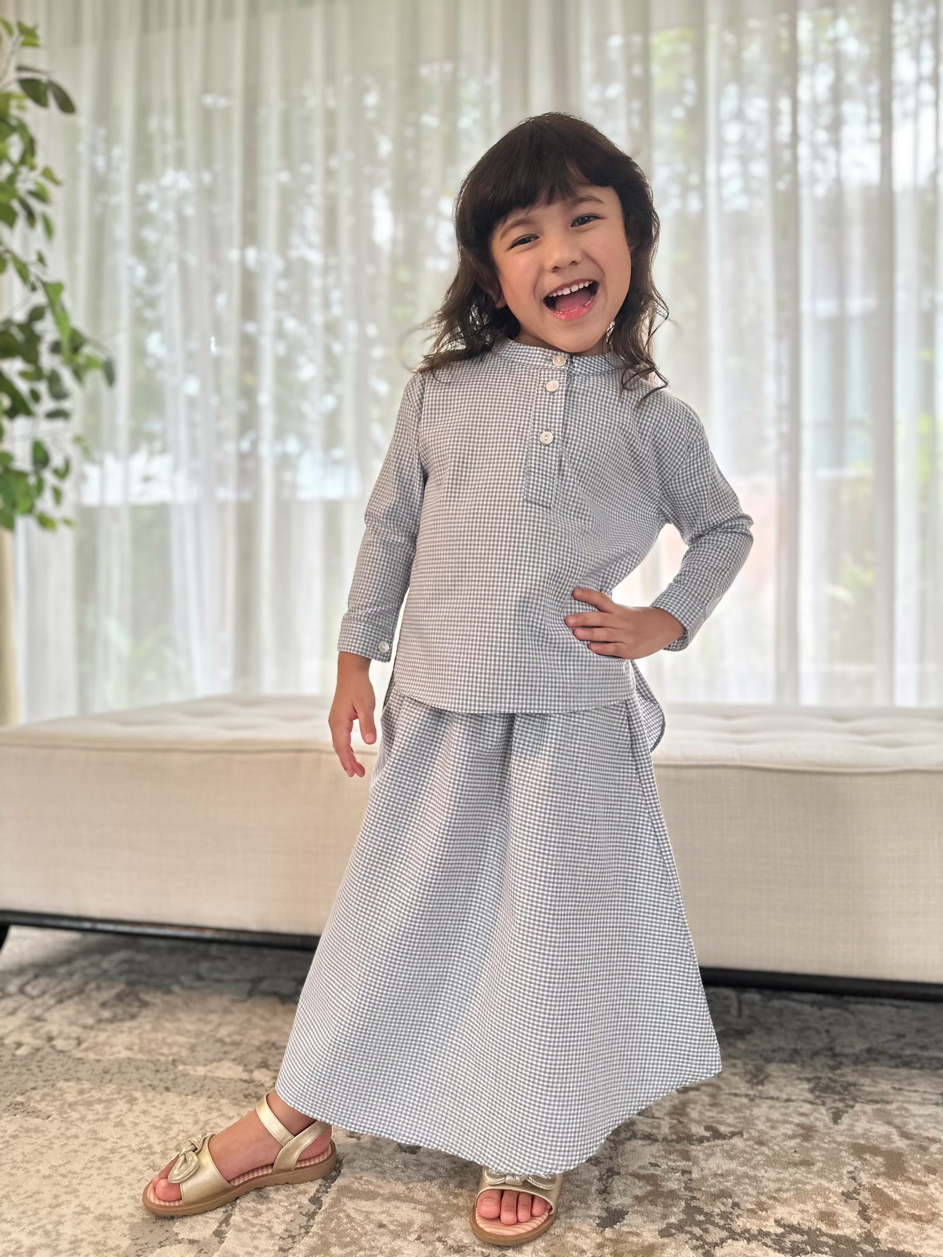 IRIS Tie-Waist Kurung Set in Icy Mist
