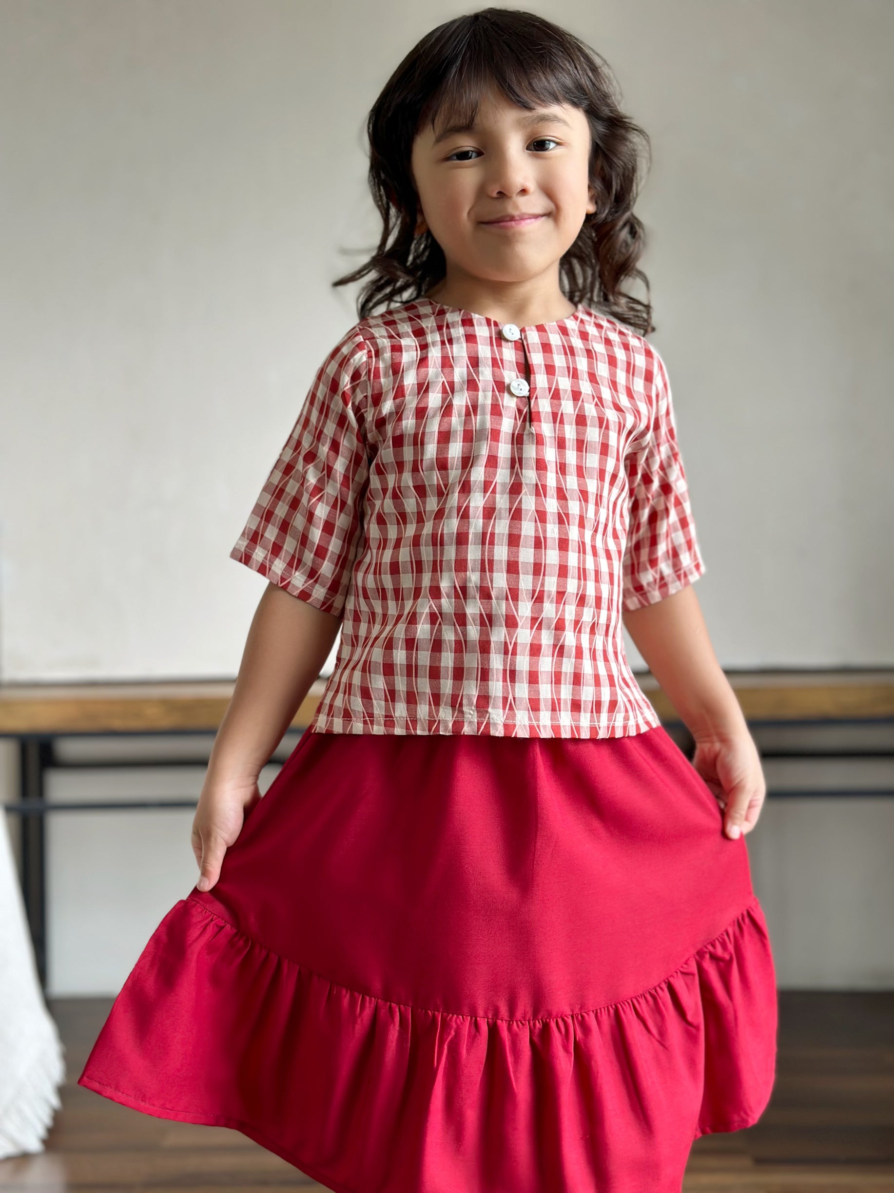 KEKWA Baby's Blouse & Pants Set in Red Rose