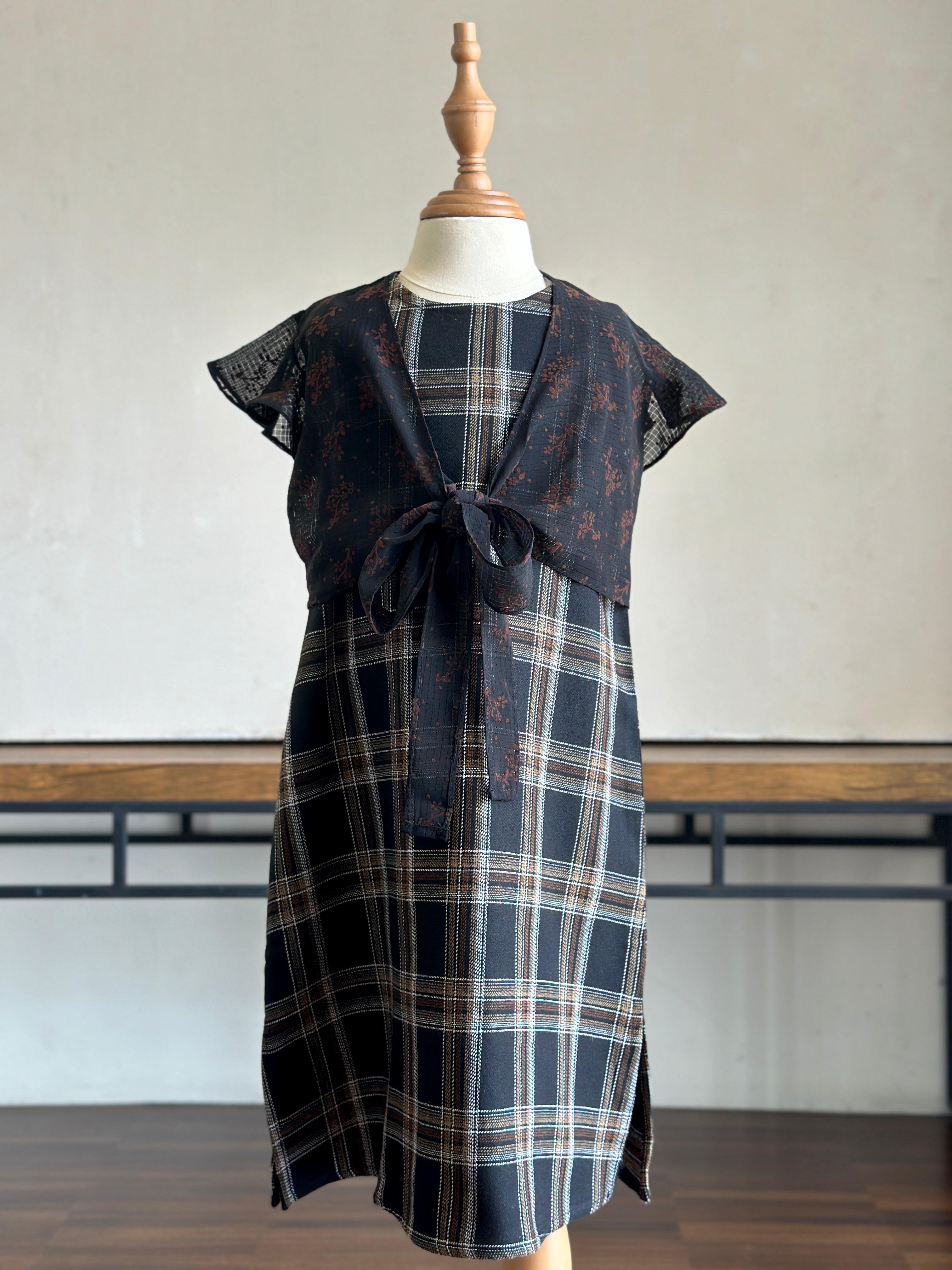 SIREH Modern Kebaya with Skirt Set in Black Plaid