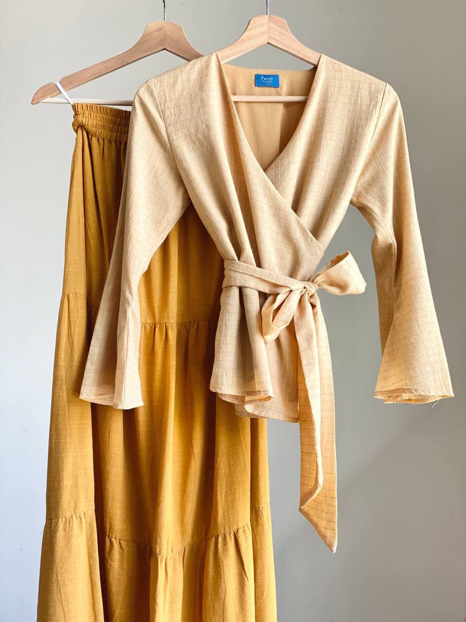 Effortless elegance meets natural charm, flowy silhouette, wavy cyan embroidery, and coconut-shell buttons that make every piece uniquely yours.