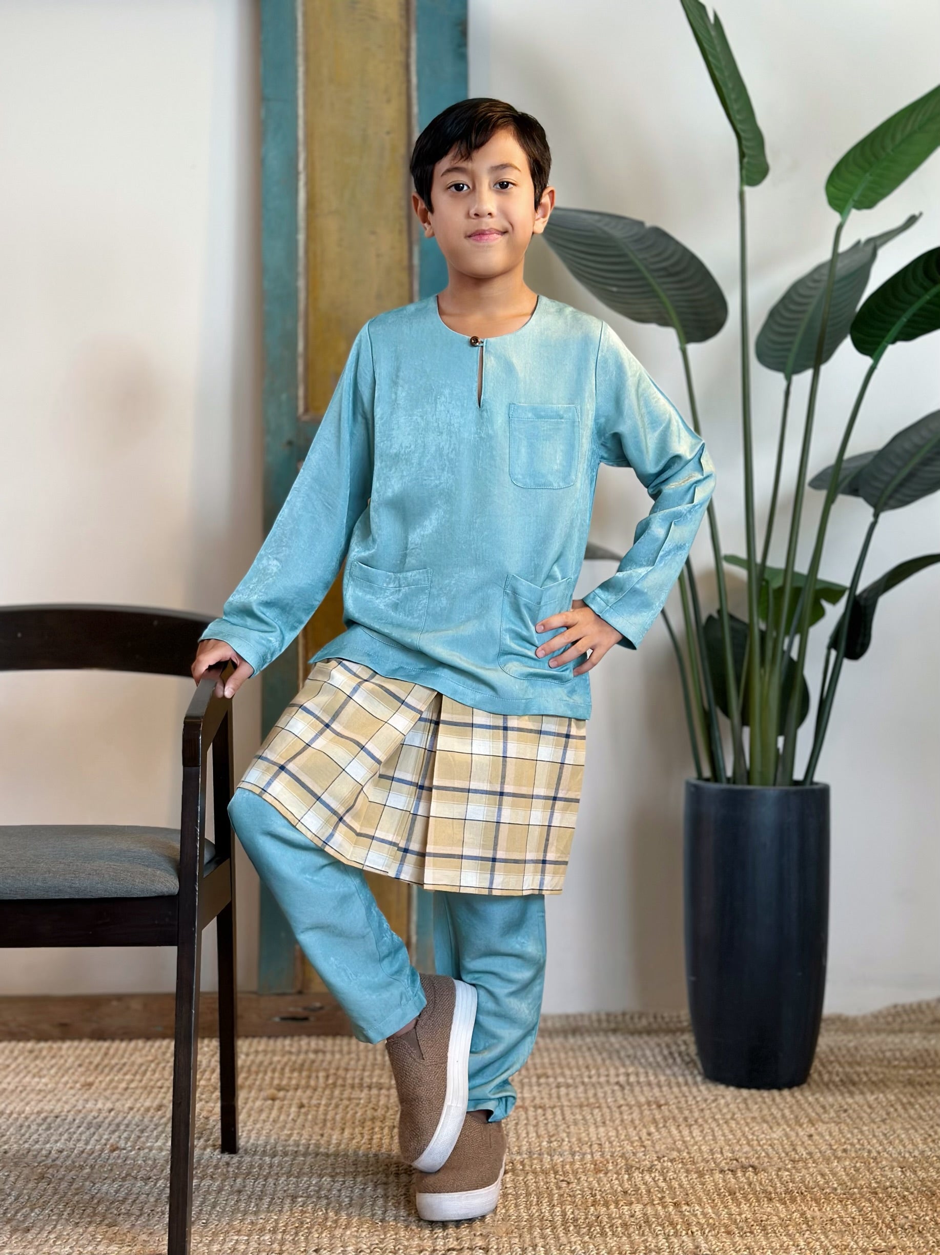 QAID Baby’s Teluk Belanga Baju Melayu Set in Taupe