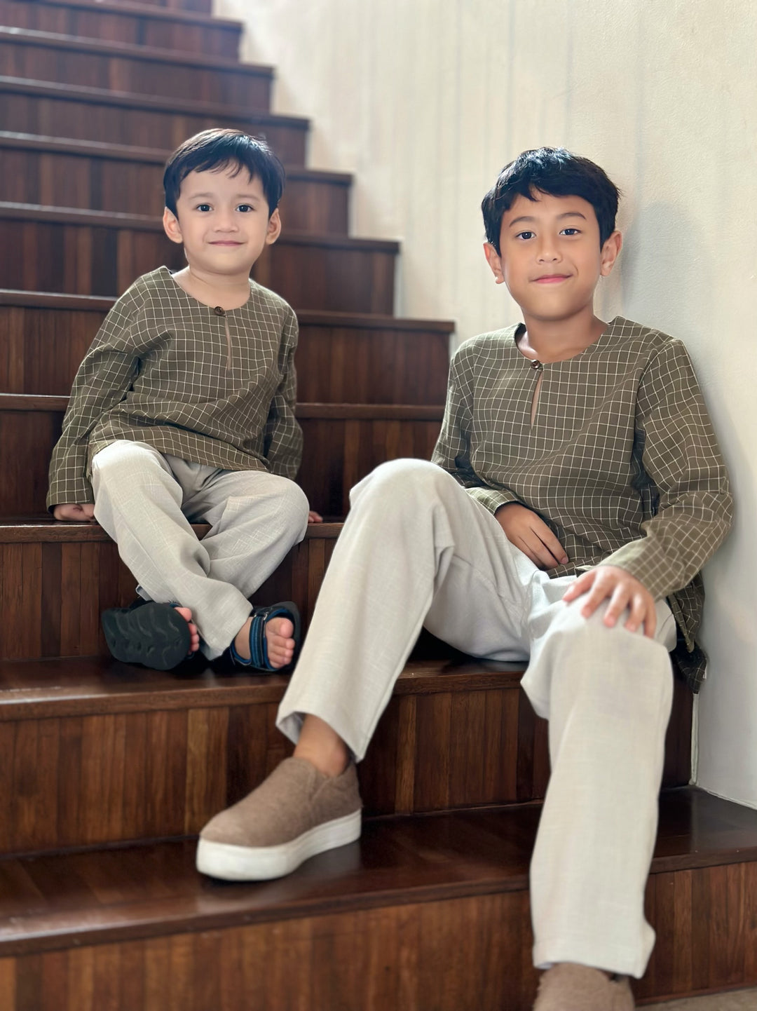 QAID Baby’s Teluk Belanga Baju Melayu Set in Taupe