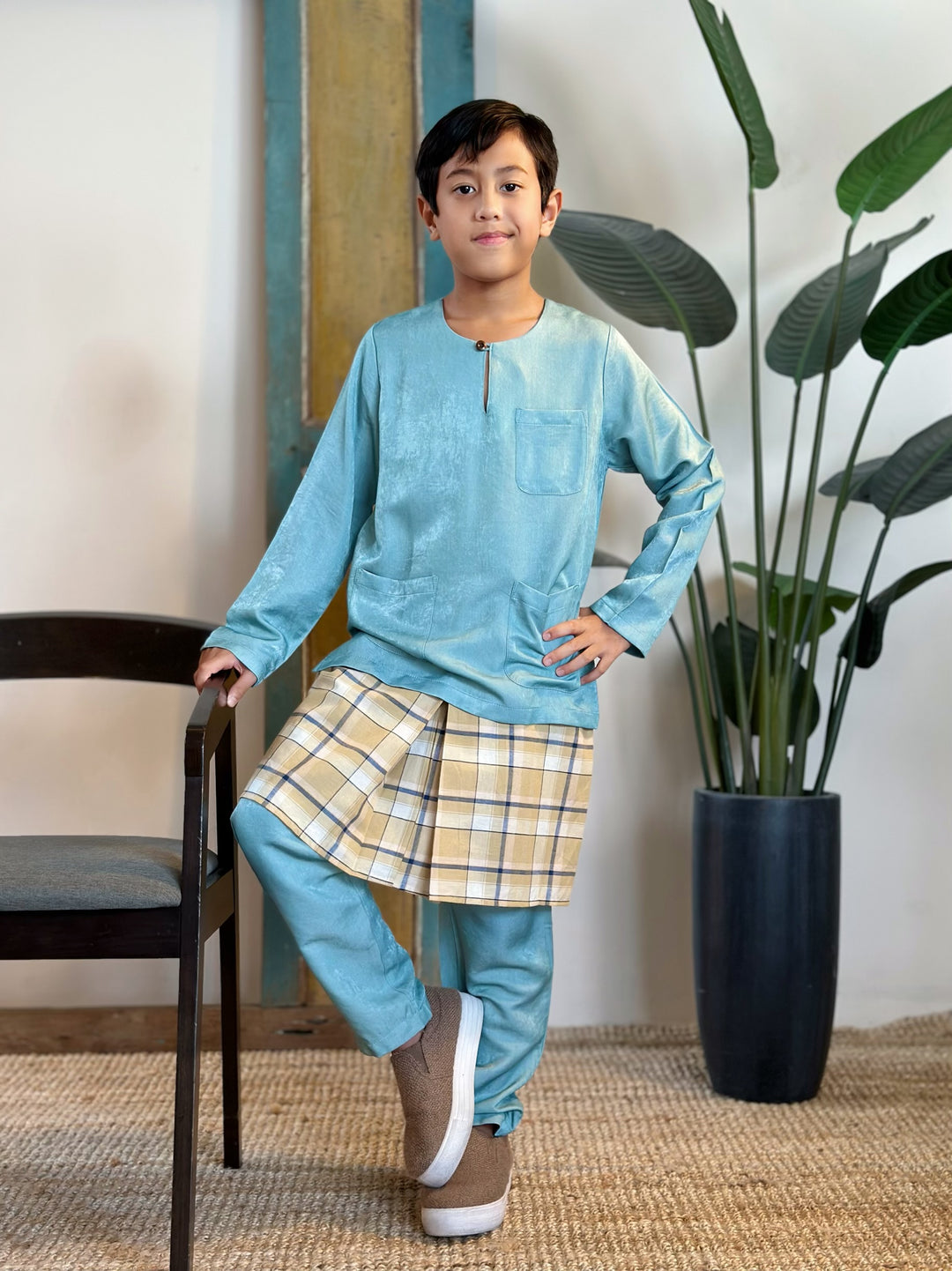 QAID Baby’s Teluk Belanga Baju Melayu Set in Turquoise