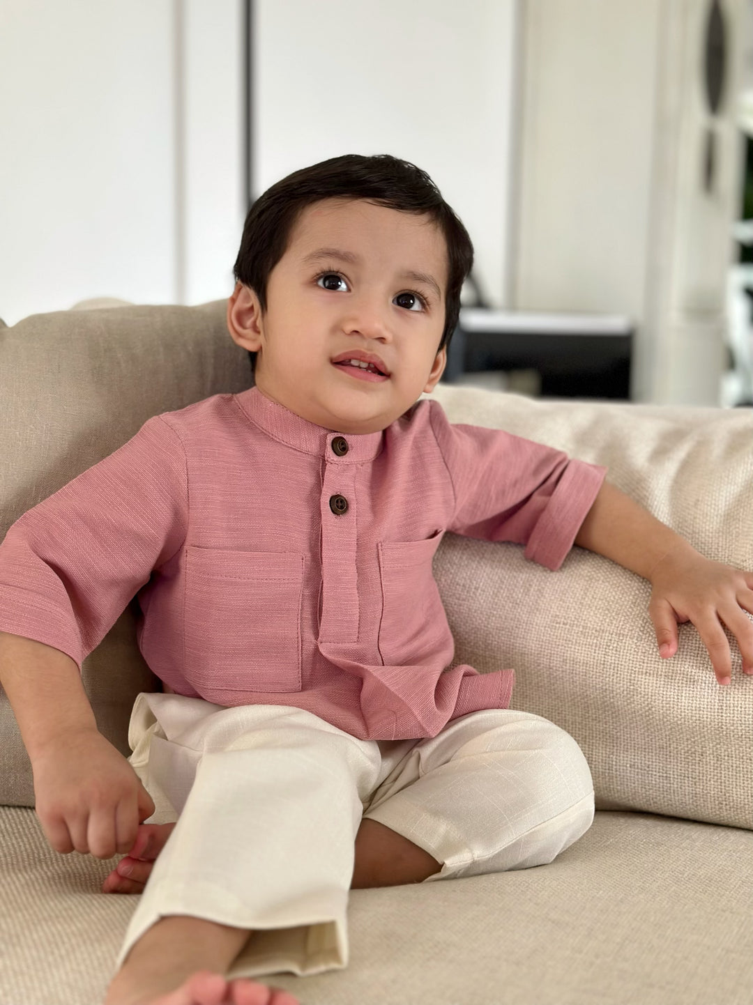 QAID Baby’s Teluk Belanga Baju Melayu Set in Dusty Lilac
