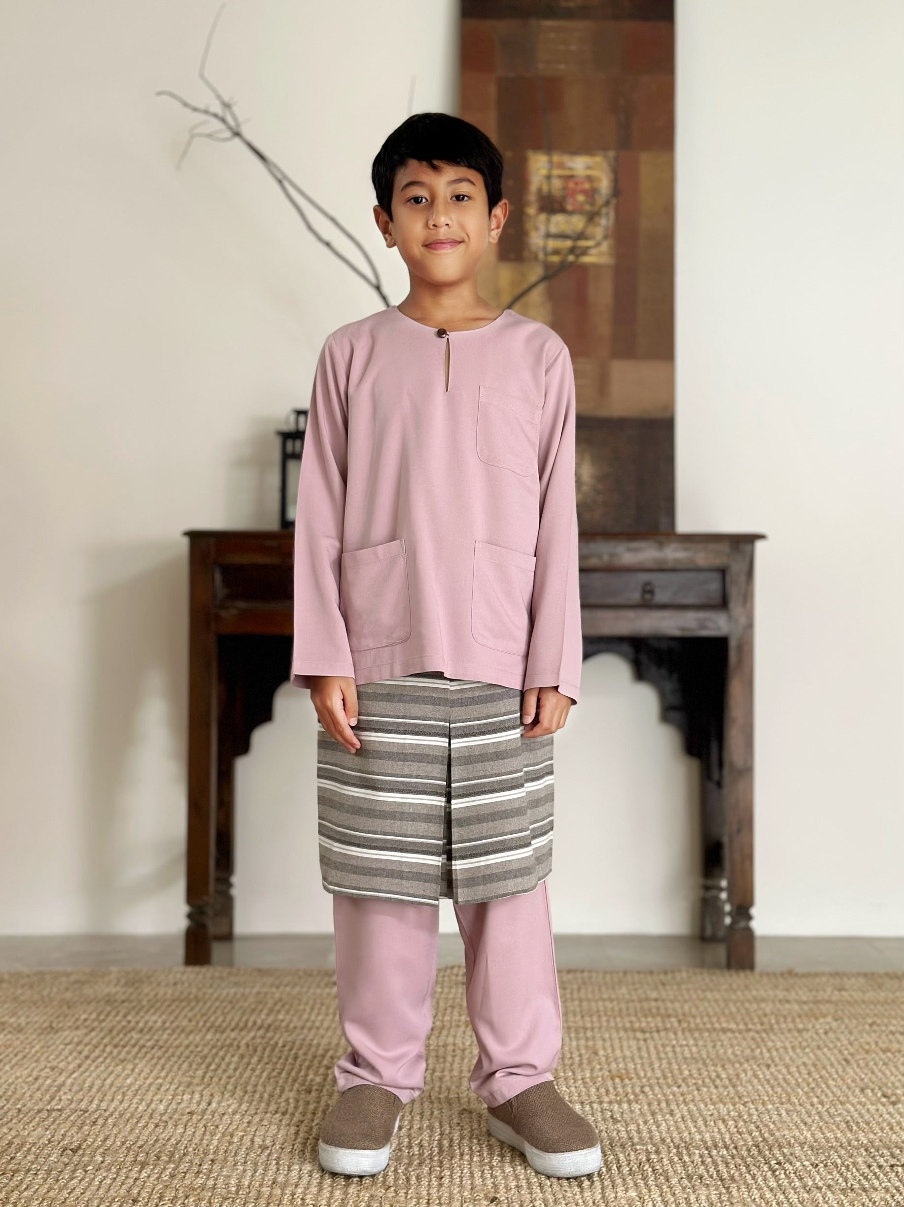 Enhance your wardrobe with our MELATI Kurung Pahang Set in Pink. Featuring a round neckline, back zipper opening, and long sleeves for a sophisticated touch. The top flares out beautifully, while the bottom showcases a long straight-cut skirt with a front pleat.