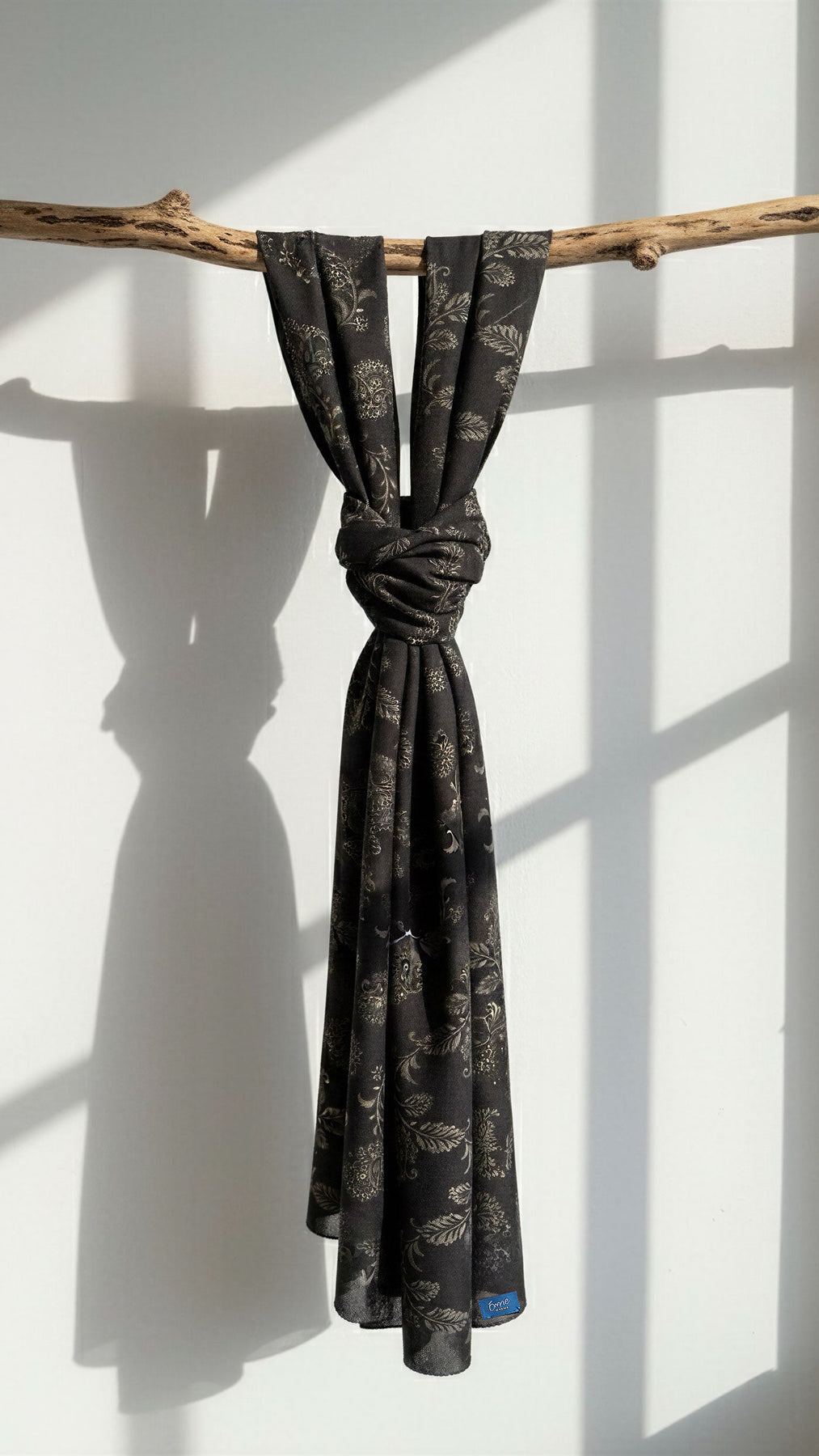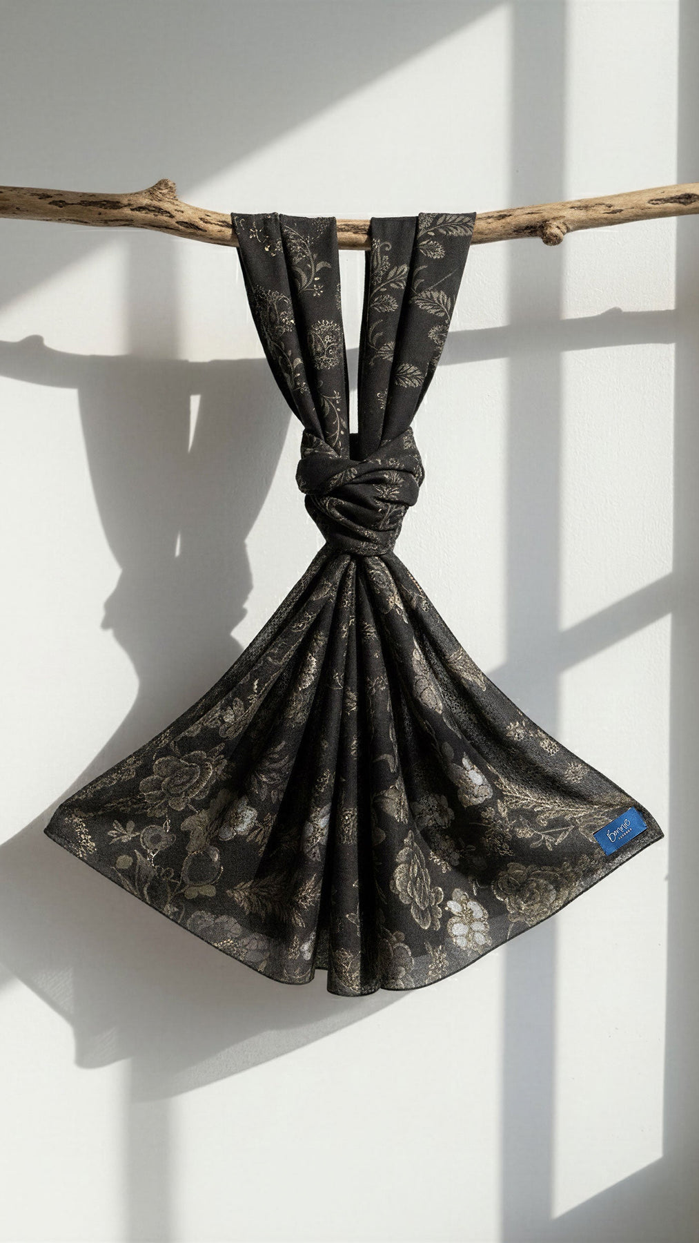 The ALUN Selendang in Black is designed to embody that essence, pairing floral artistry with soft, airy comfort for an effortlessly refined look.