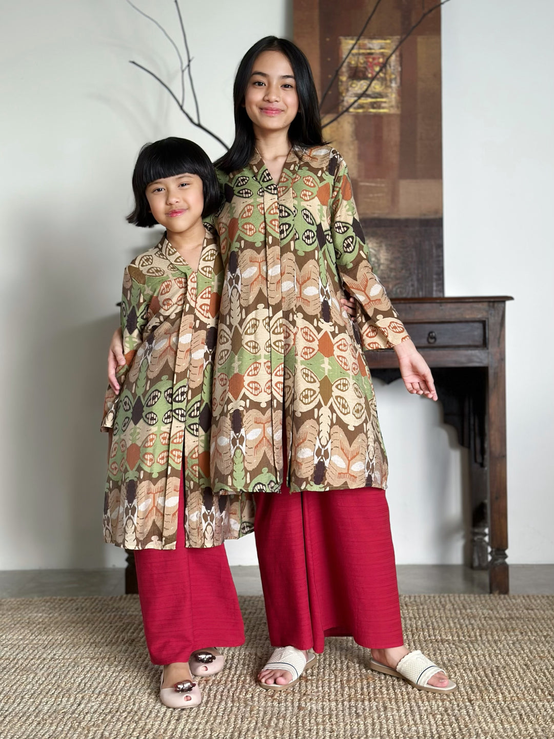 TERATAI Short Kebaya Set in Olive Floral