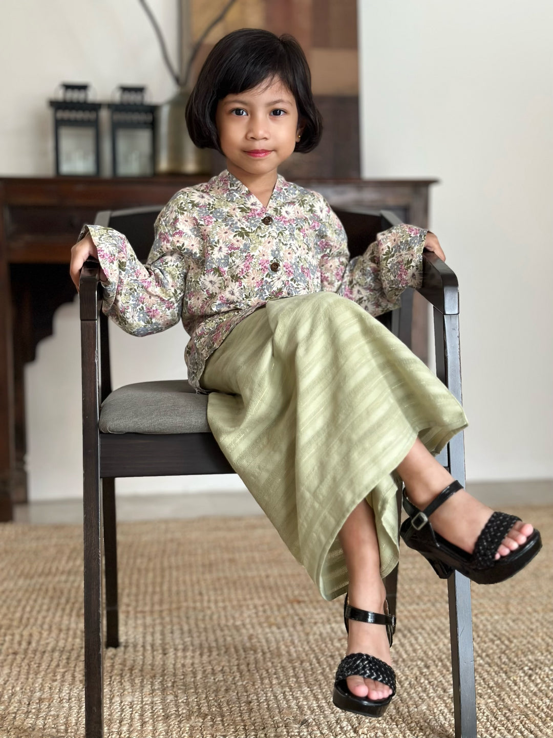 CEMARA Short Kebaya Set in Olive Floral