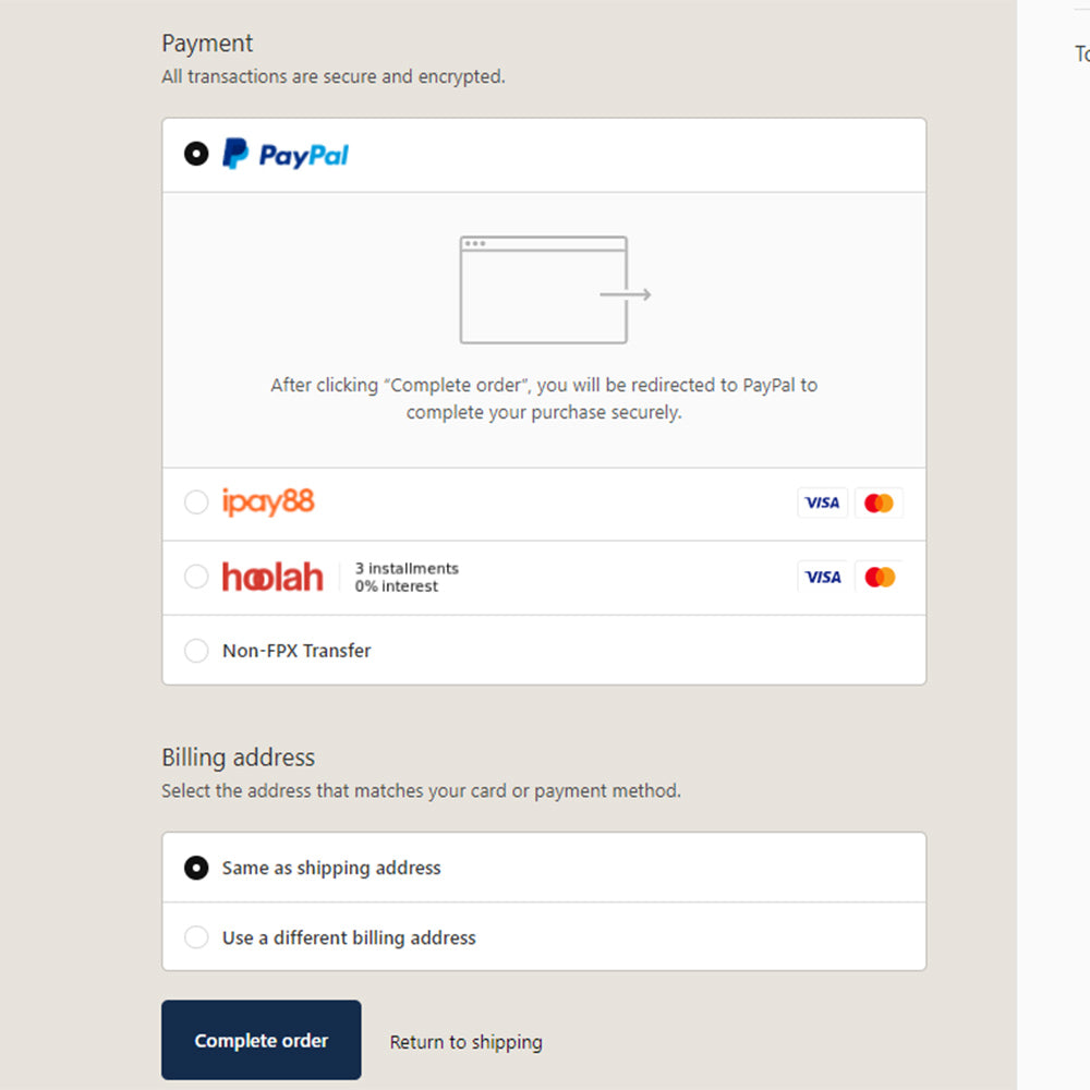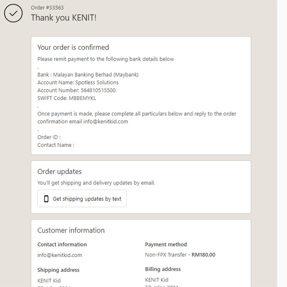 Your order is complete, if you've selected Non-Fpx payment; the bank details will be shown here.