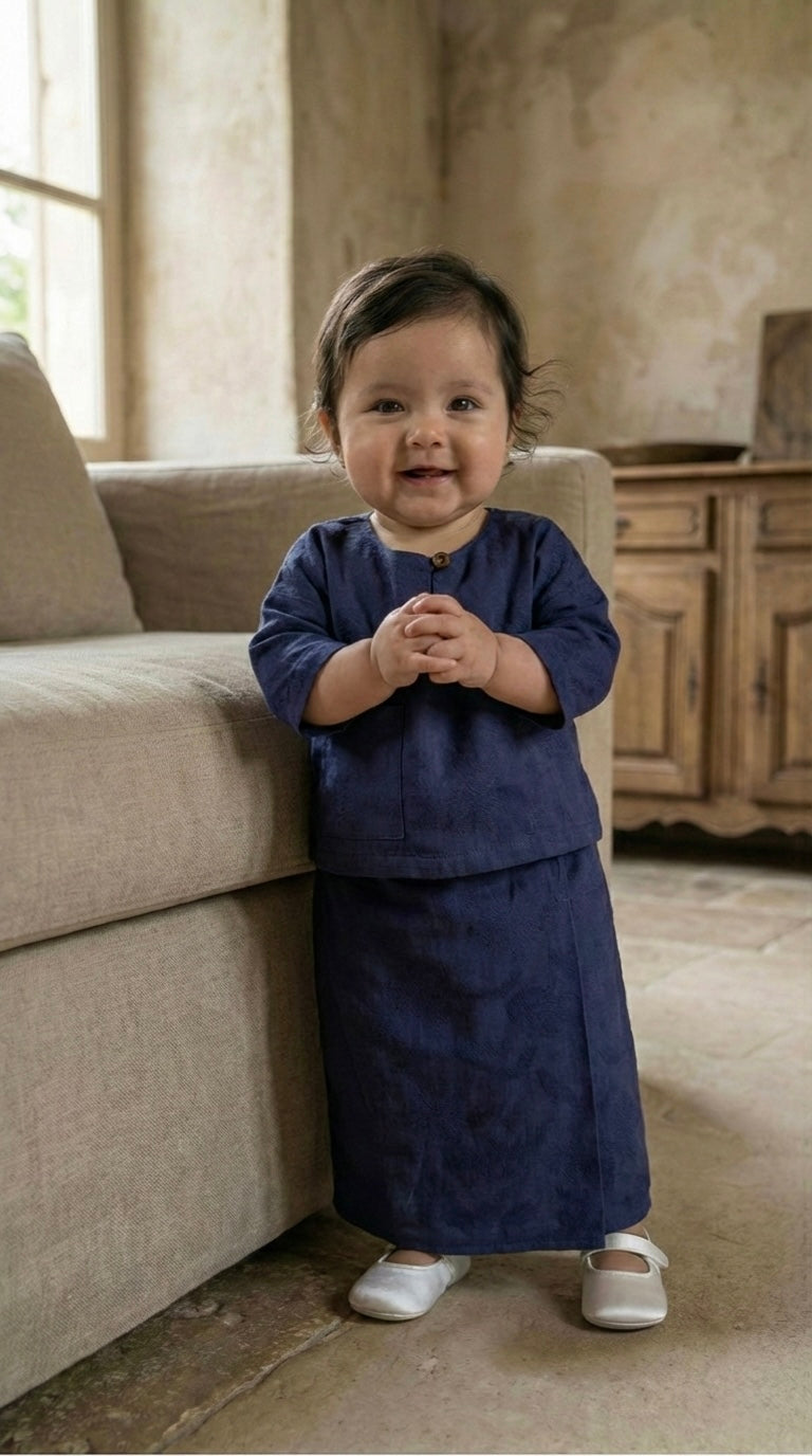 The ANDIKA Baju Melayu Cekak Musang in Midnight Blue brings together classic tailoring and practical details, creating a smart yet easy wearing look for growing boys.